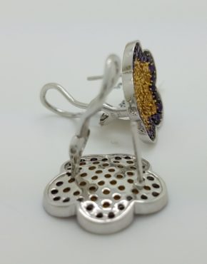 Citrine and Amethyst Floral Earrings 18k White Gold