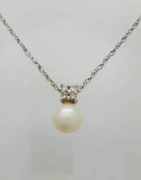 14K WHITE GOLD PEARL & 0.15CT DIAMOND PENDANT