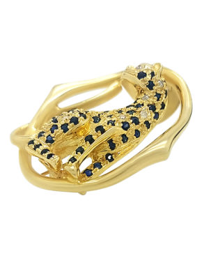 DIAMOND & SAPPHIRE LEOPARD 14K YELLOW GOLD BROOCH