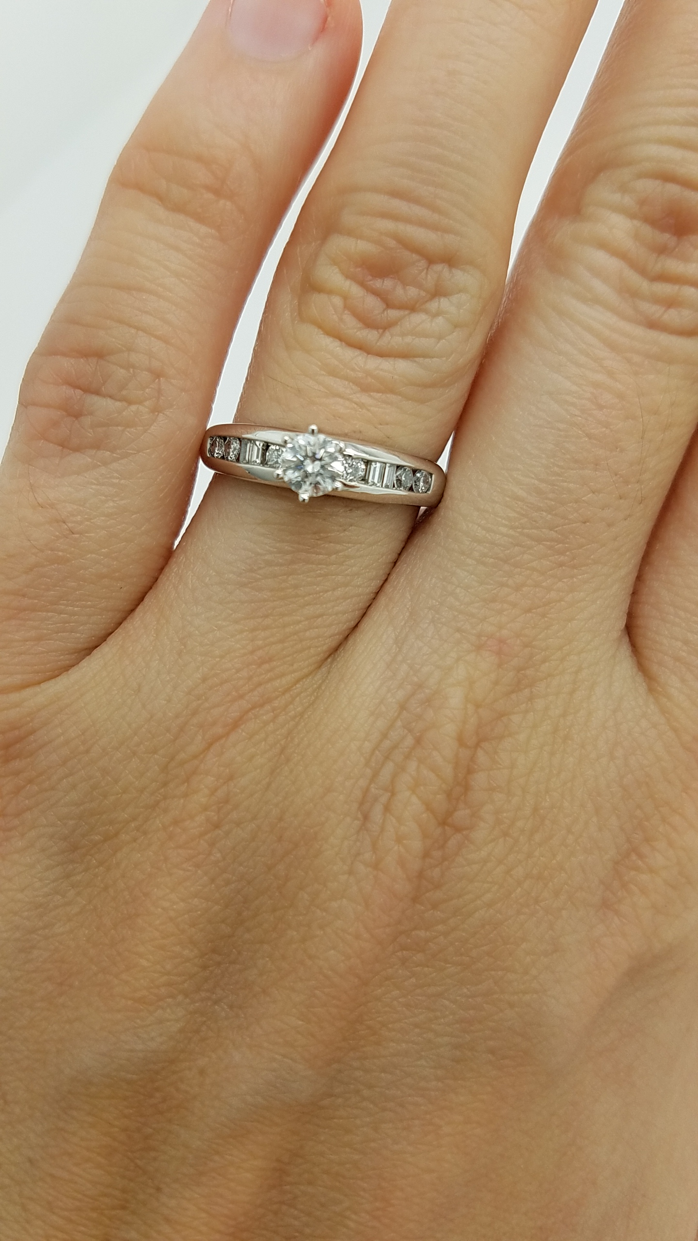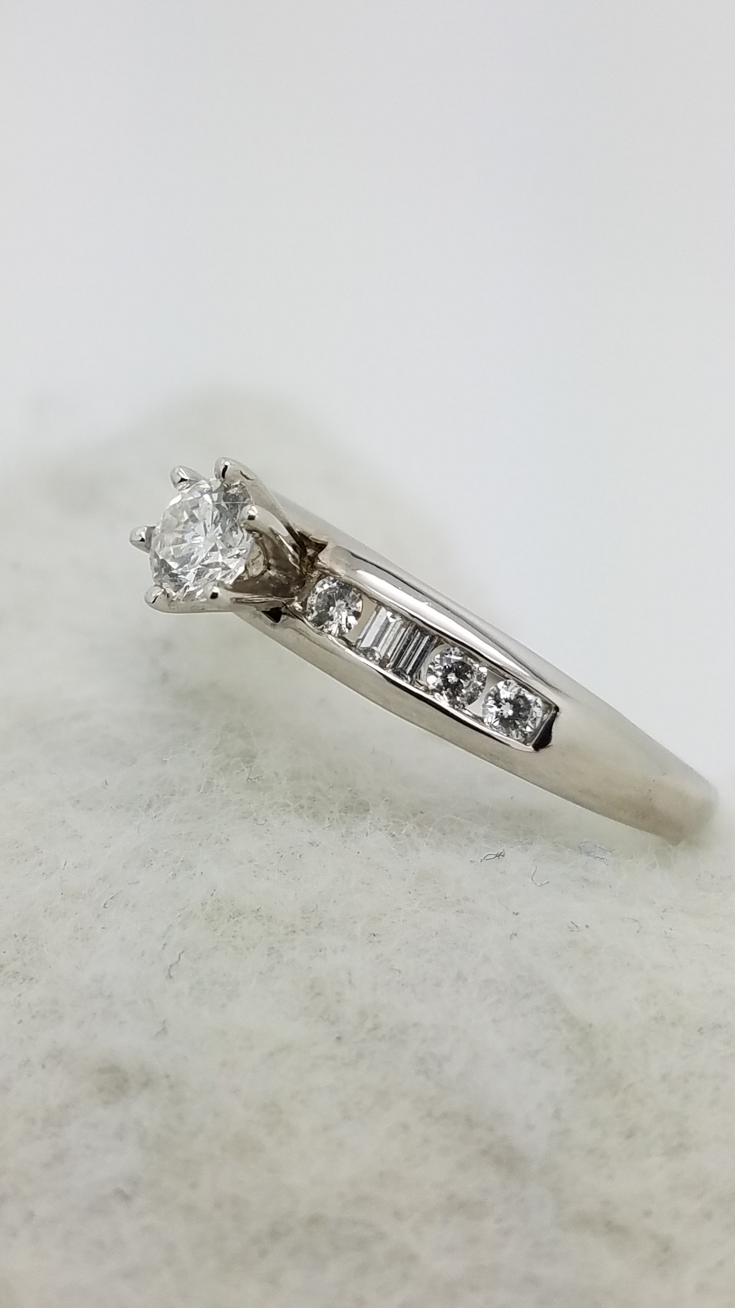 Be the first to review “14K White Gold Channel band classic engagement 0.60 ct. Round baguette Cut Diamond 6-prong Solitaire with Accents Engagement-Ring”