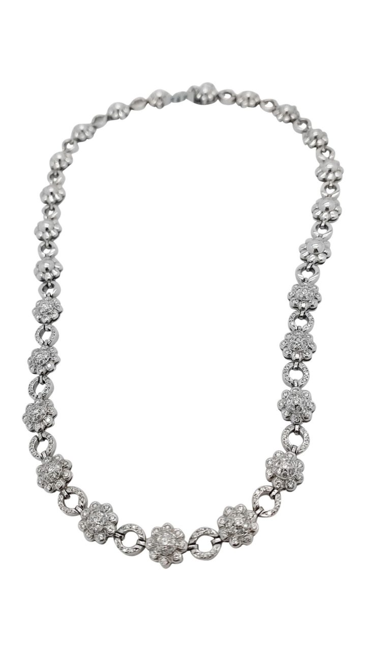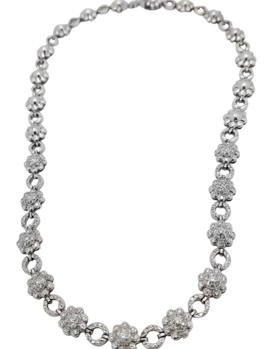 Be the first to review “18K White Gold FLOWER 3.50 ct pave DIAMOND tennis necklace-pendant”