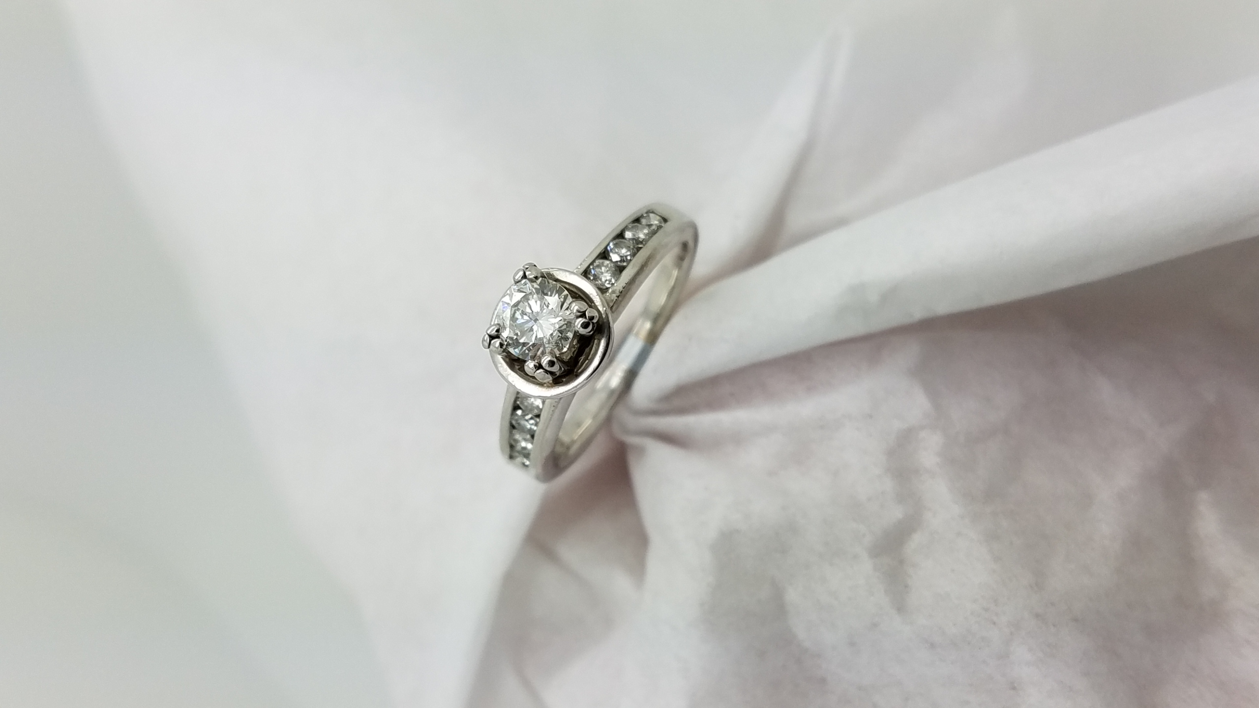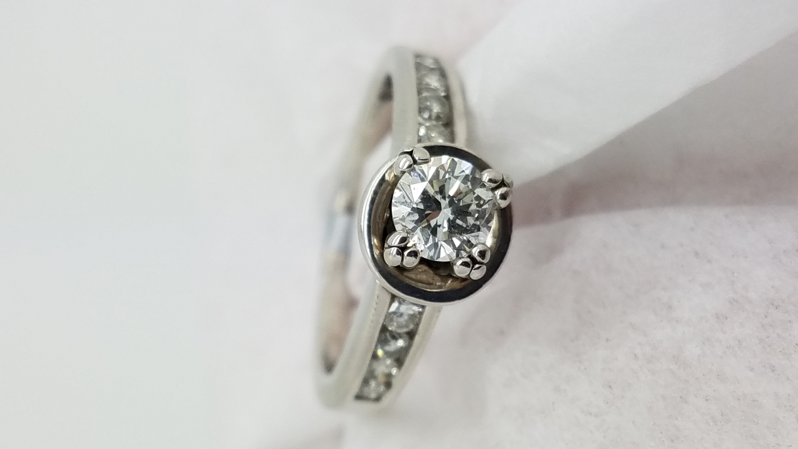 Be the first to review “18K White Gold Bezel 1.15 ct. Round Round Cut Diamond 4-prong Solitaire with Accents Engagement-Ring”