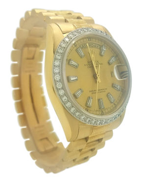 Rolex Oyster Perpetual Day-Date Diamond Bezel & Dial 36mm 18K Yellow Gold Watch 18078