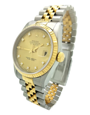 Rolex Datejust 18K Yellow Gold & Stainless Steel Gold 1.25ct Diamond Dial 36mm Watch 16233
