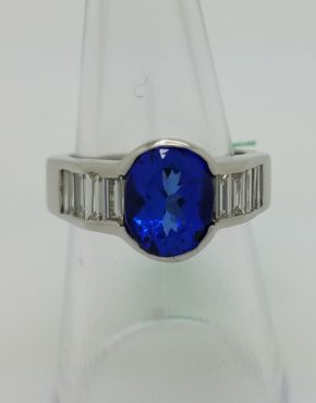 Natural Tanzanite Oval Cut 18k White Gold Ring with 1.00 ct Diamond